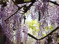 ↑校庭の藤棚に美しく紫色の藤の花が咲きました!
