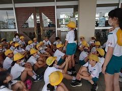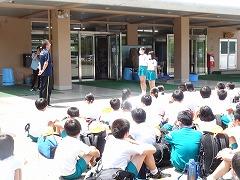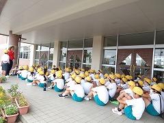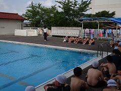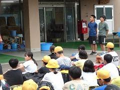 6年生が一生懸命プール掃除をしてくれたおかげで、全校のみんながプール学習を行うことができます。プール学習の約束を守って、安全に楽しいプール学習を行いましょう。6年生は、今年は小学校最後のプール学習です。小学生のうちに25mは泳げるように、そして、より長く、より早く、よりいろいろな泳ぎ方ができるように挑戦してください。お話の後は、模範演技をしました。その後は、水慣れとして、洗濯機の渦をみんなで作りました。