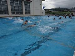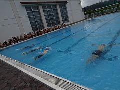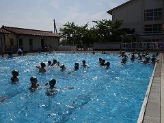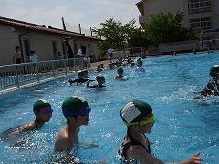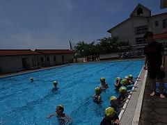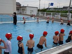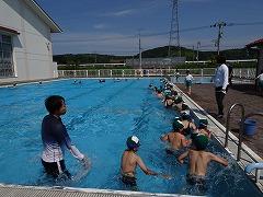 ↓3年生が学校のプールに入りました。3年生はアザレアで泳ぎの練習をしてきたので、学校のプールでもさらにめあてをもって泳ぎに挑戦していくことでしょう。今日は、学校のプールに入って潜ったり浮いたりして、水に慣れました。