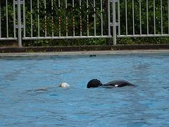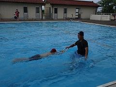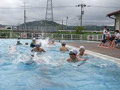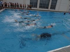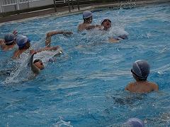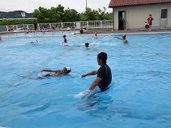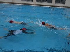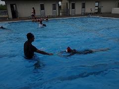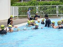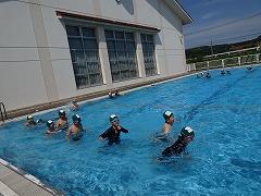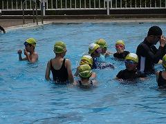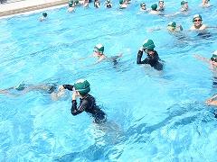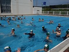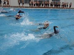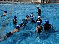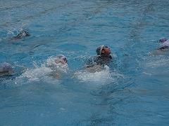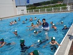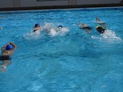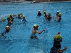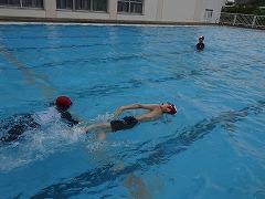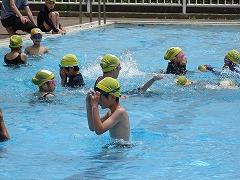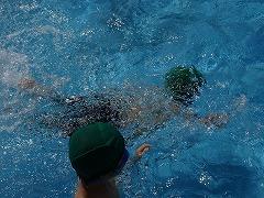 ↓3年生 プルー学習 先生と潜りっ子競争、バディーと潜りっ子して、水に慣れました。
