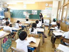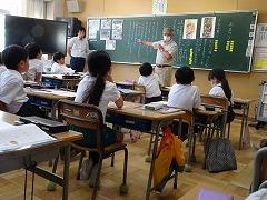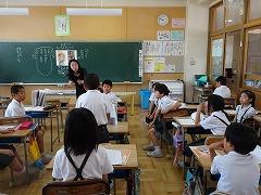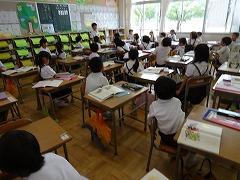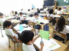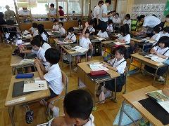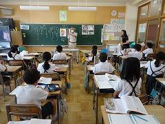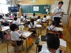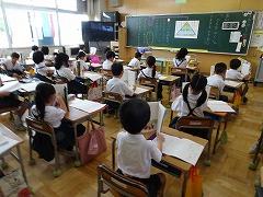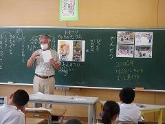 2年1組 道徳科 「ぎおんまつり」の教材文を読んで、地域の伝統行事について考える学習をしました。主人公のぼくは、祇園祭の練習の時に叱られるときもあるのですが、実際に、お祭りにでて拍手をもらい、よかったと思うお話です。この教材で話し合った後、自分たちの地域の伝統行事について考えました。そこで、ゲストティーチャーとして条南コミュニティの館長さん来ていただき、この地域のお祭りについての思いをお話していただきました。