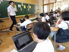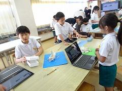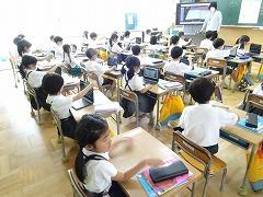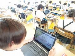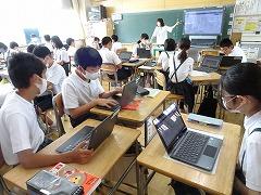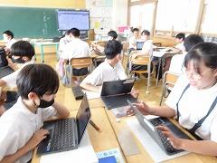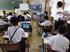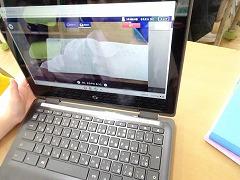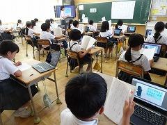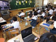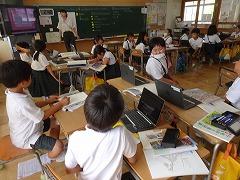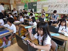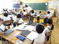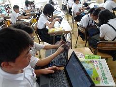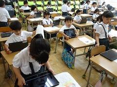 ↓5年 社会科 農産物の生産地を調べています。タブレット端末があるので、教室ですぐに調べ活動ができます。