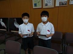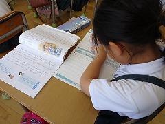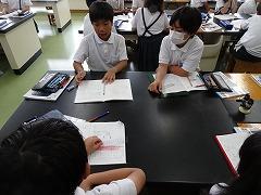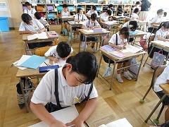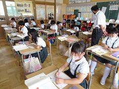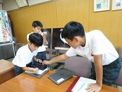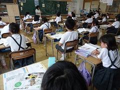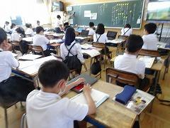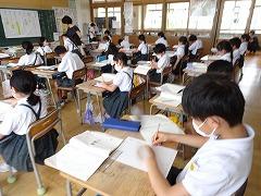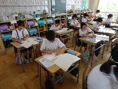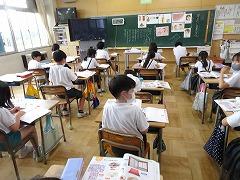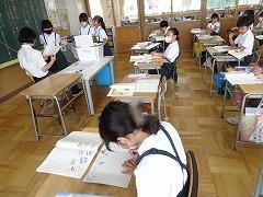 ↓5年生 国語 学校のよりよい環境について調査しています。校長室にも質問に来て、一生懸命メモを取っていました。