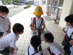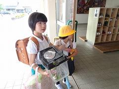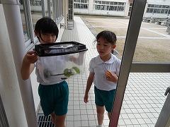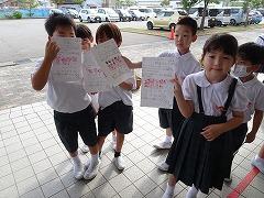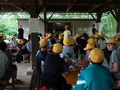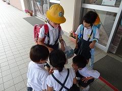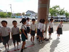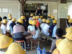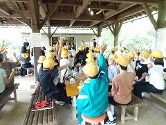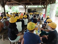 ↑帰ってきて感想を交流しました。3本ずつ植えたイネがたくさんの数のイネに成長していて、びっくりしていました。水の管理を毎日してくださっている舛田さんのおかげとみんなで感謝しました。
