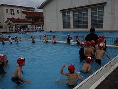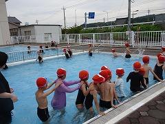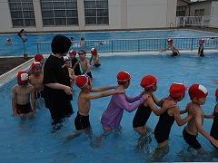 ↓2年生もプールに入りました。みんなで列を作って、大きいプールに入り、水になれる学習です。