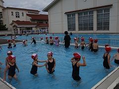 ↓1年生 初めての学校のプール 小さいプールでまずは水慣れです。
