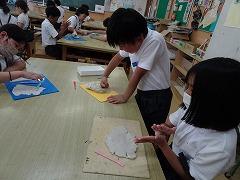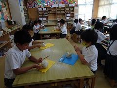 ↓3の3 図工 粘土を切って、かきだして、くっつけて