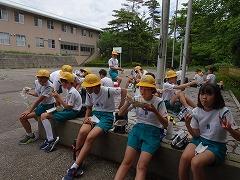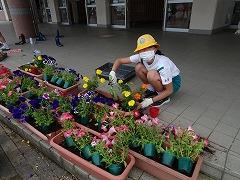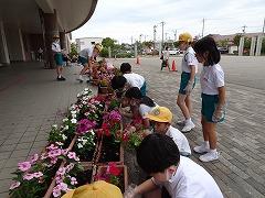 ↑6限目は委員会活動、環境委員会は夏の花をセンス良くなるよう各自が考えて植えました。