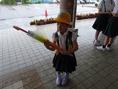 ↓今朝は、雨の中の登校でした。傘のしずくを払い、傘を巻いて玄関に入っています。