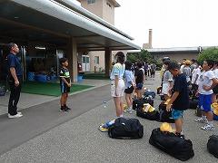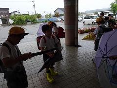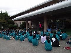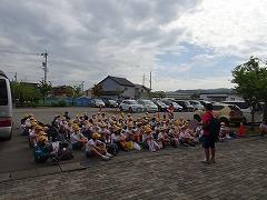 ↓天気予報は、うまく外れ、薄日の差す中で、出発式ができました。目標や約束を確認してバスに乗り込みました。