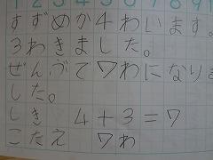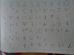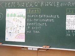 ↓1年算数 絵を見て、あわせるたし算やふえるたし算のお話をノートに書きました。ノートに書いたお話を写真に撮