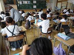 ↓4年社会科 東日本大震災の折にボランティアとして現地に行ってきた先生の体験談を写真を見ながらお聞きし、これからの学習の問題意識を高めていました。