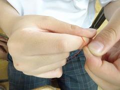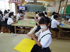 ↓5年 家庭科 玉結びに挑戦です。針に糸を通すことに、苦戦していましたが、うまく糸は通ったときには、安堵と感激は大きかったです。