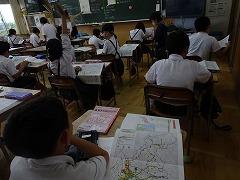 ↓4年社会 津幡町の地震ハザードマップを用いて、話し合いました。