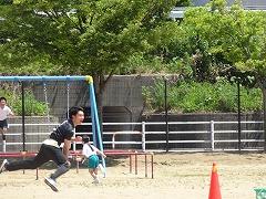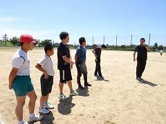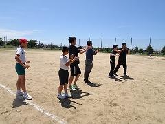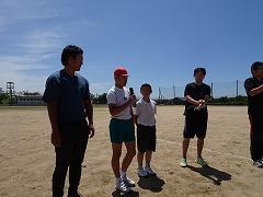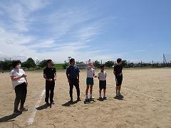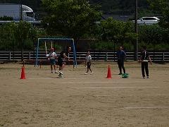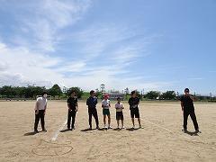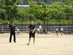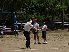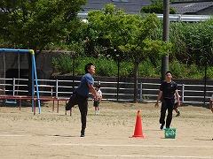 ↓第6投者は、条南小の教員チームの新星、4年担任のS先生です。本気を出せば、こんなものです!