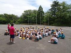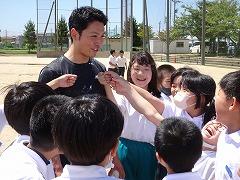 ↓選手の皆さん、素晴らしい投球を見せていただき、ありがとうございました。運動場の端までソフトボールが飛ぶことに、驚きました。びっくりです!そして、感動をいただきました。選手の皆さんも、楽しかったとよい汗を流していました。先生と児童が交じっての本気の勝負に、条南っ子は大いに盛り上がりました!感動をありがとうございました。選手の皆さんは、接戦でしたが、優勝は、84mでした。