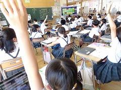 ↓振り返りには、たくさんの児童が手を挙げ感想を伝え合いました。