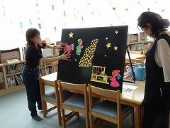 ↓図書ボランティアさんが、パネルシアターの練習をされています。楽しみにしています。