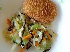 ↓今日は韓国料理です。ごはん、豚肉キムチ炒め、トックスープ、青りんごゼリーでした。