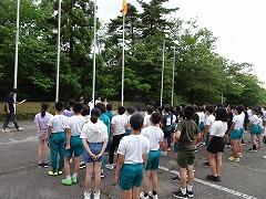 ↓無事、条南小学校に到着です。解散式を行いました。最後までよい姿で目標を達成しようとがんばりました。卒業まで最上級生として、下級生に何を伝えたいか、考えて行動していきましょう。