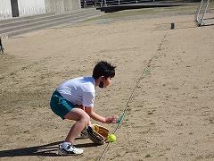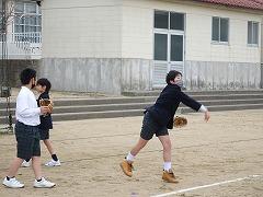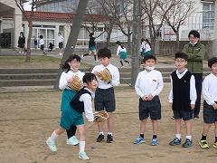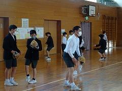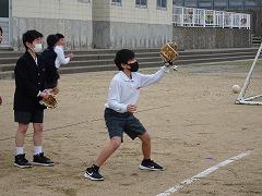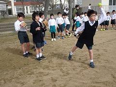 ↓大谷グローブを使って、6年生が体育で「野球」に挑戦しました!