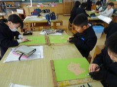 ↑6年生図画工作 小学校最後の作品は、木彫りのオルゴール箱作りです。自分の夢や希望、好きなものを木彫りにしています。