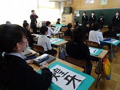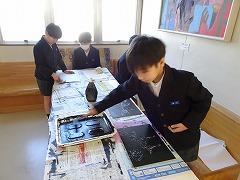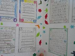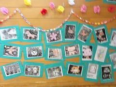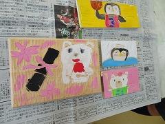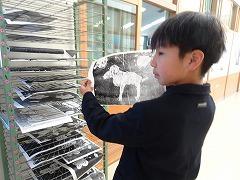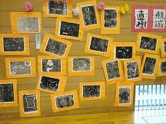 ↑4年生は生き生きとしたタッチで動物の版画を作り、周りには6年生へのメッセージを書きました。そして、6年生の名前を習字で心を込めて書きました。