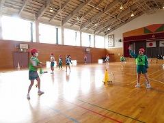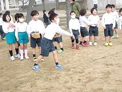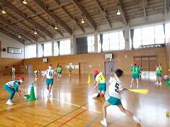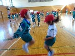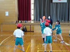 ↓2年生 体育 大縄跳びをしてから、ボール運びゲームです。ボールを持った人は動けません。