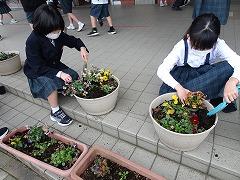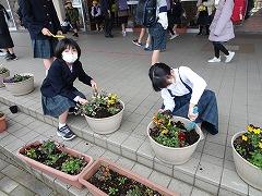 ↑環境委員会さんは、玄関の花苗を補植しました。