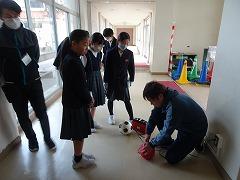 ↑体育委員会さんは各学級のボールの空気の抜け具合を確認し、抜けているところは空気を入れて使いやすいようにしました。