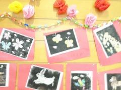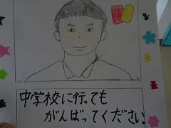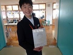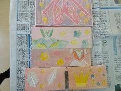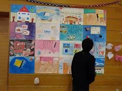 ↓3年生は「卒業を迎えた6年生へ」という題で詩を作りました。そして,その詩をイメージした絵を描いて作品にしました。明るいタッチで描かれていました。