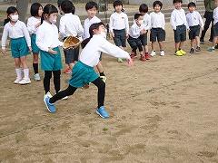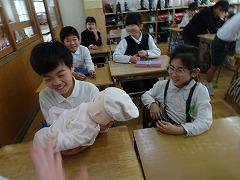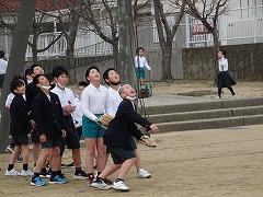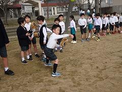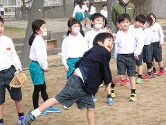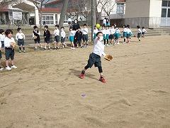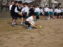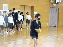 ↓今日の昼休みの大谷グローブ野球教室は2年生対象でした。何回もキャッチしているうちに、慣れてきました。