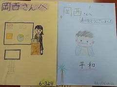 ↓6年生は先日聞かせていただきました遺族会の岡西先生に感想をお伝えしようと、お手紙を書きました。平和な世の中を維持するのは、これからは「私たち」であると考えるきっかけとなりました。心に残る貴重なお話をありがとうございました。