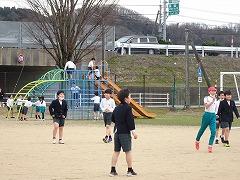 ↓今日の昼休みは、5年生の「大谷グローブ野球教室」でした。温かな陽気で、運動場で元気に遊ぶ条南っ子が多かったです。