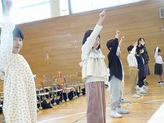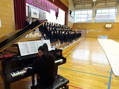 ↓6年生も在校生に向けて出し物をプレゼントしてくれるようです。在校生の心に残るようにと、心を合わせて練習していました。