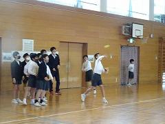 ↑野球部出身の先生方、華麗なバックキャッチを披露してくださいました。それを真似て挑戦、みごとバックキャッチ!さすがです!