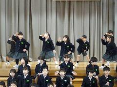 ↓1年生 6年生を送る会の練習をしています。歌ったり、踊ったり、元気いっぱい、そして、みんなの心がぴったりそろっています。