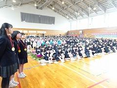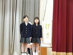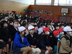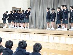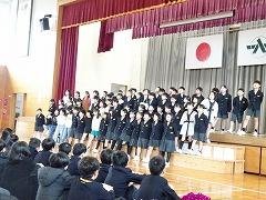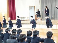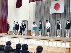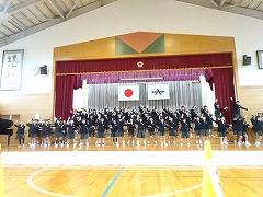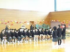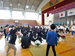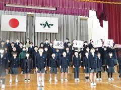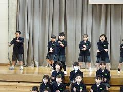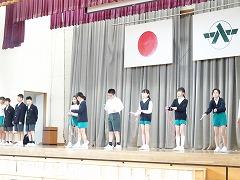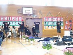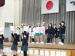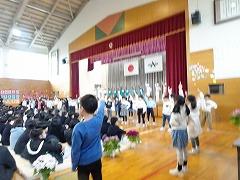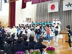 ↑ストーリーのある出し物で、言葉を大きな声ではっきり話し、伝えることができました。大縄はタイミングがぴったり、ダンスはノリノリで上手でした。歌は2年生全体の心が一つになり、中学校でも「スマイル」で頑張って下さいとのメッセージはしっかりと6年生に届いたことでしょう。