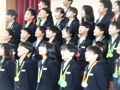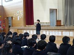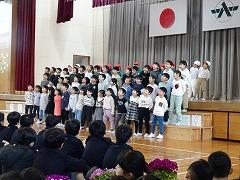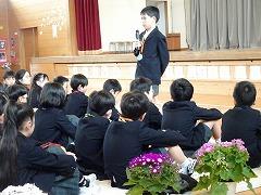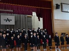 ↑歌は「3月9日」の合唱曲を見事に美しく力強く歌い上げました。6年生の心の奥にまで響いたことでしょう。