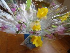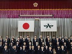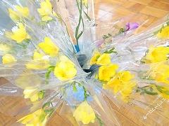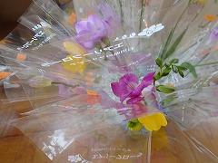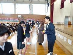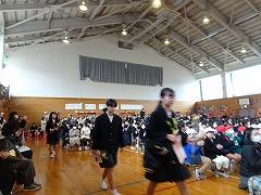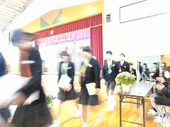 ↓プログラム15番、6年生退場です。手にしているのは、花市場さんからご提供いただいた石川県で品種改良された、香り高いフリージアの一種、「エアリーフローラ―」です。6年生から家族へのお礼のプレゼントにするために、申し込みをしていただきました。