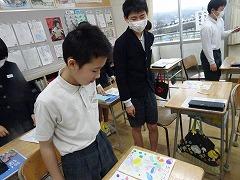 今日は6年生を送る会、当日です。朝、1年生は6年生の教室に行って、6年生にペンダントのプレゼントをお渡ししました。6年生は喜んでくれました。今日はそのペンダントを付けて、6年生を送る会に来てください。