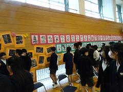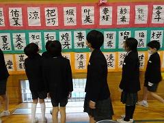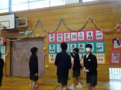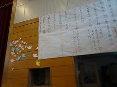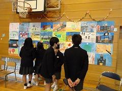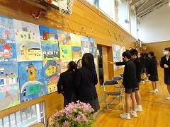 ↓6年生を送る会が始まる前に、6年生は各学年が作ってくれた、体育館の掲示物をゆっくり見ました。