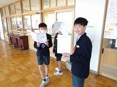 ↑保健委員会さんは、学級仕舞いの様子を思い浮かべることでよりよい人間関係を創ろうと、学級にお知らせに行く準備を進めています。