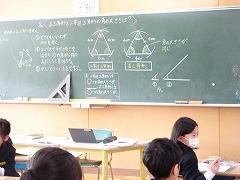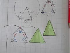 ↓3年生算数 正三角形と二等辺三角形の角の大きさを比べました。