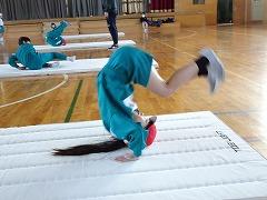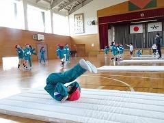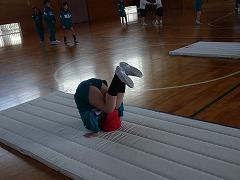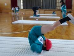 ↓2年体育 マット遊び運動です。くるくる回る後ろ回転の技に挑戦!何回もチャレンジしているうちに、コツをつかんだようです。おみごと‼