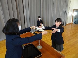 ↑卒業式の予行練習をしました。いよいよ2日後です。心に残るすてきな卒業式にしましょう。