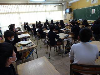 3学期スタート 始業式を行いました。感染症対策をとり、テレビ放送で行いましたが、教室ではみんな、よい姿勢で新しい気持ちで、お話を聞いてくれました。