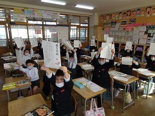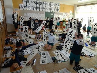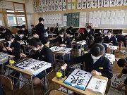 今年の勉強の上達を願って、校内書初め大会を行いました。心を込めて、一生懸命取り組んでいました。