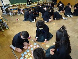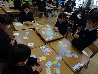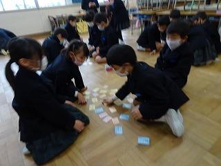 ↑1年生は生活科で、自分達で作ったかるたや百人一首をしました。冬を楽しんでいます。