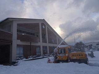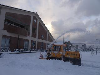 昨夜からの雪で、朝から除雪車出動です。本校教員が運転しています。